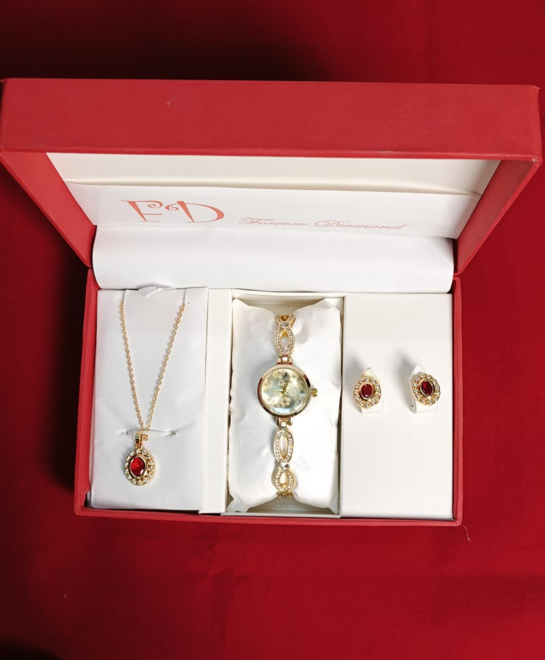 πŸ’–( FD) Forever Diamond Ladies Jewellery Watch___ (Red Diamond With Golden Dial)