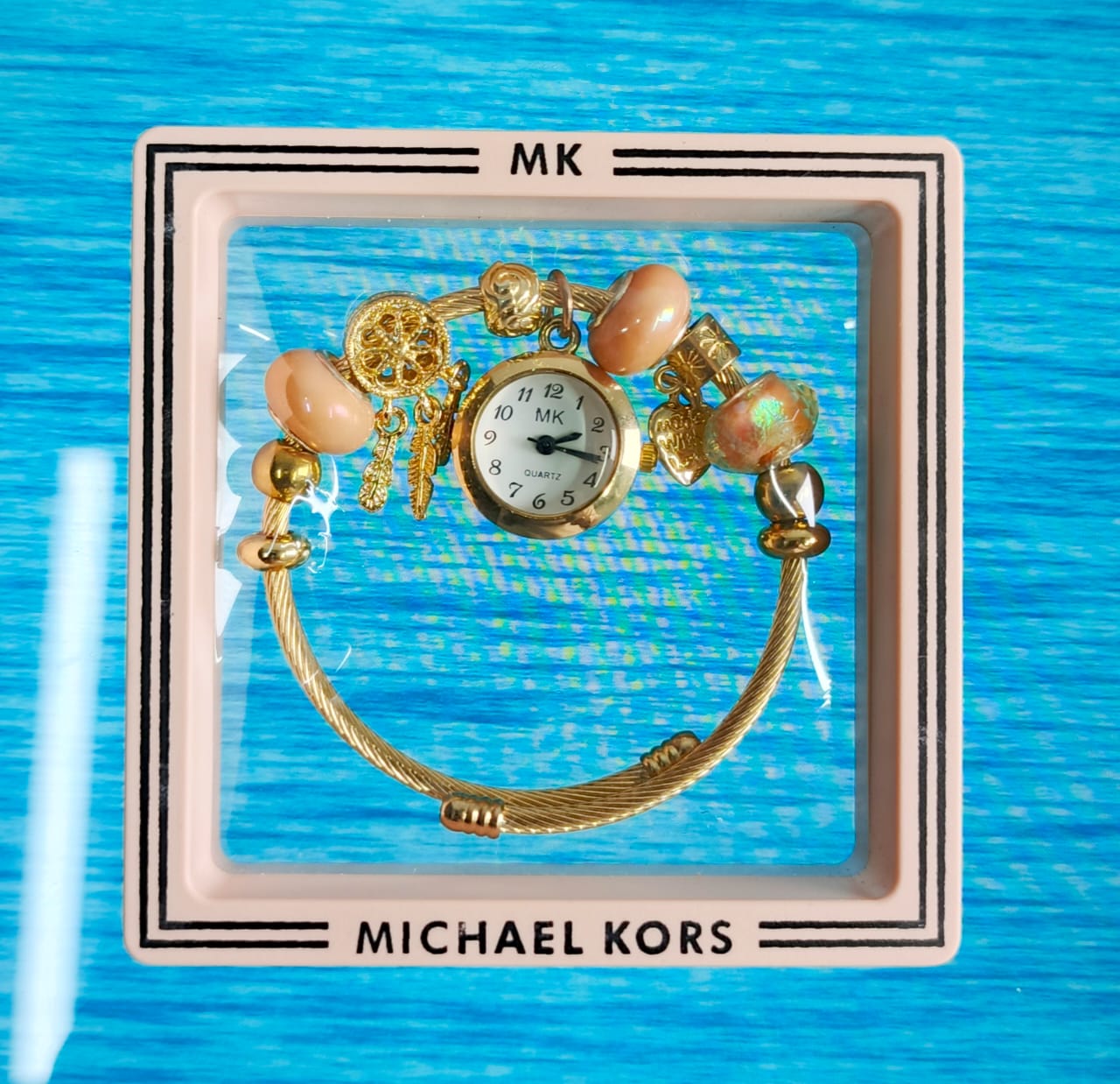 πŸ’– Elegant Glamour on Your Wrist – MK Ladies Bracelet Watch (Golden & Light Brown )