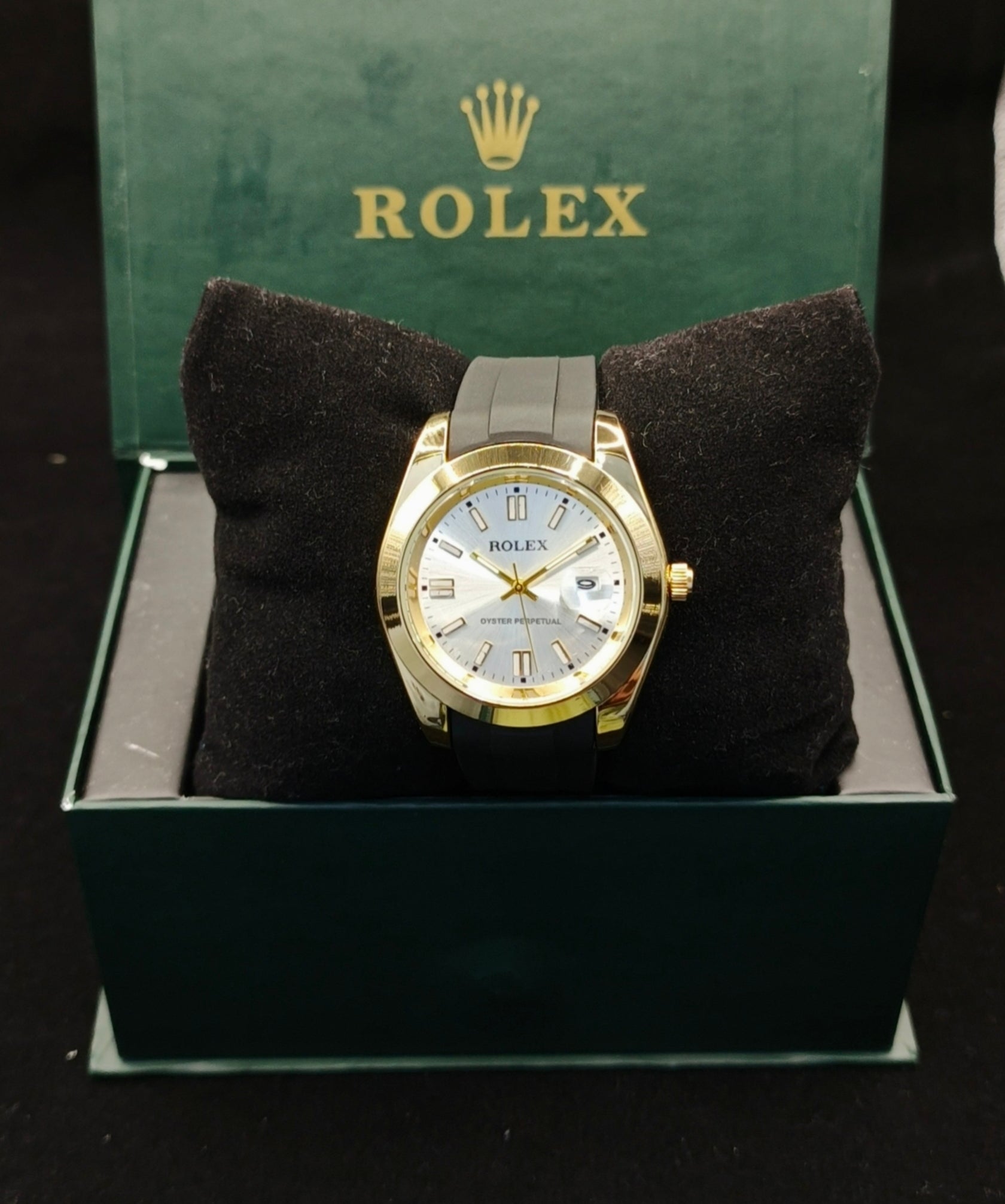 (Rolex Date)  Black Strap – Golden & White Dial With Date